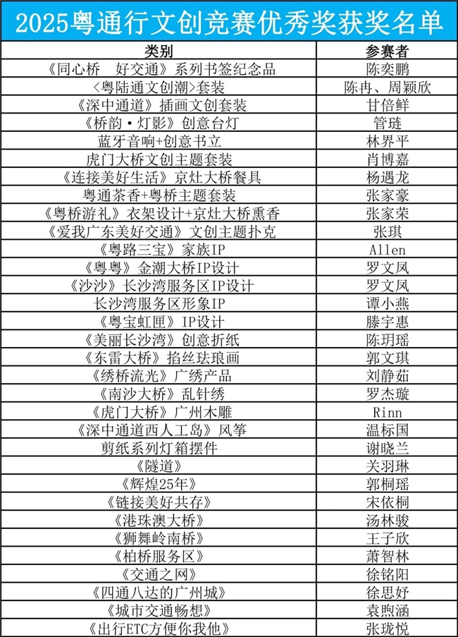 在广东交通集团成立25周年之际,广东交通集团所属广东联合电子服务股份有限公司依托“粤通行”平台,发起“爱我广东·美好交通”文创设计竞赛,旨在深挖岭南文化基因,以“交通延伸美好生活”为价值内核,邀请社会各界用创意诠释广东交通的时代风采。